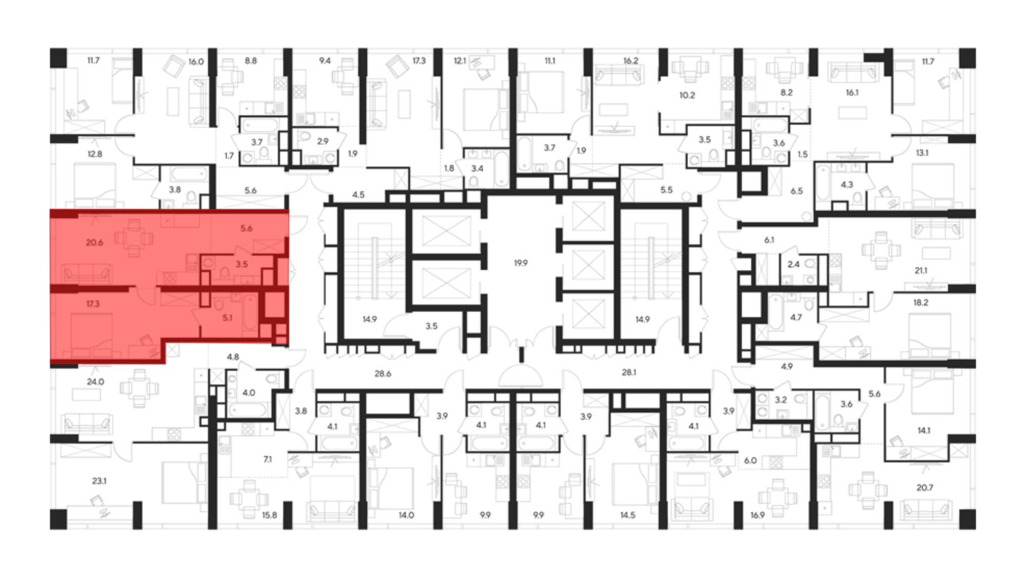 В проекте представлено множество планировочных решений — от студий до просторных 3х-комнатных квартир. Все лоты сдаются с подчистовой отделкой, высотой потолков до 3,5 метров и панорамными окнами.