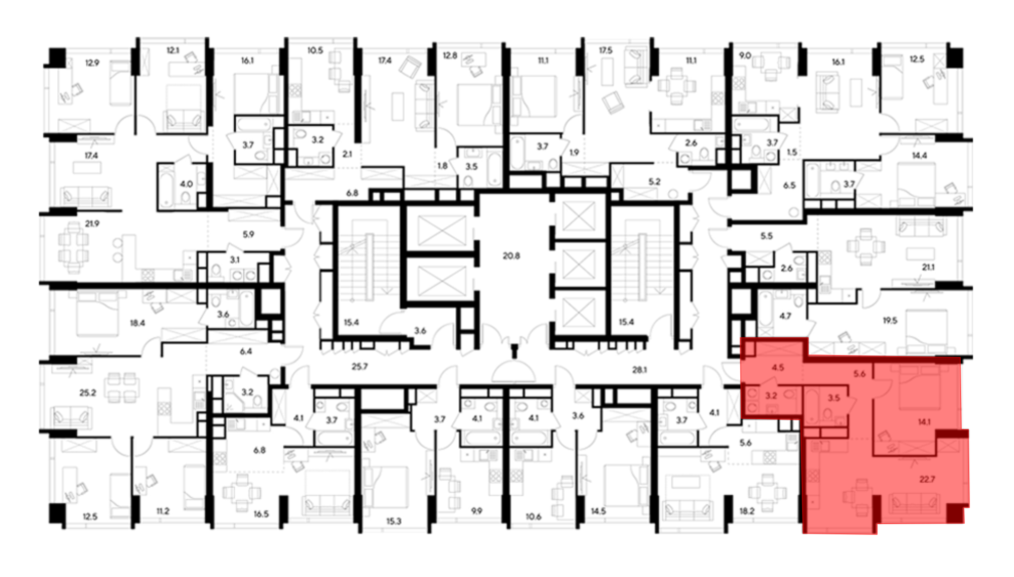 В проекте представлено множество планировочных решений — от студий до просторных 3х-комнатных квартир. Все лоты сдаются с подчистовой отделкой, высотой потолков до 3,5 метров и панорамными окнами.