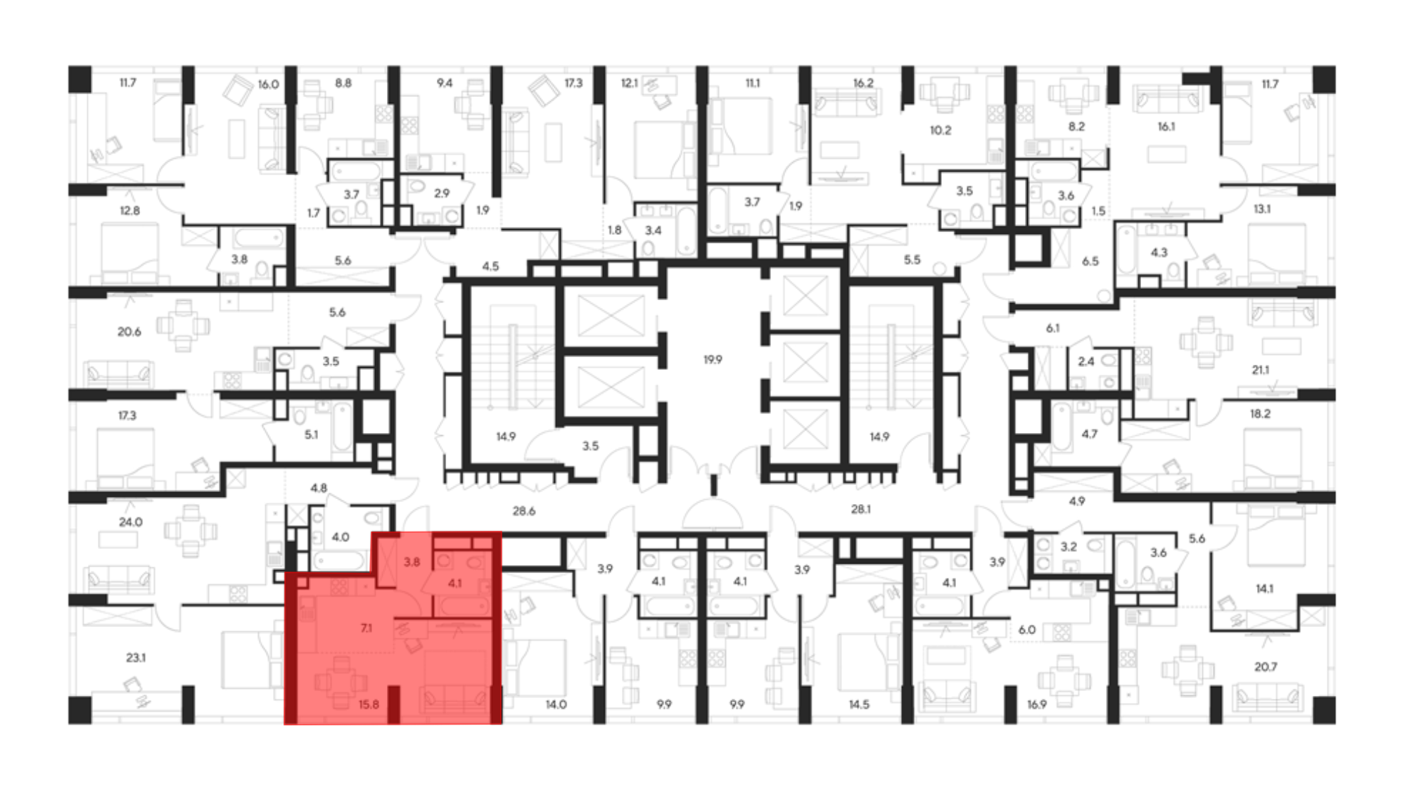 В проекте представлено множество планировочных решений — от студий до просторных 3х-комнатных квартир. Все лоты сдаются с подчистовой отделкой, высотой потолков до 3,5 метров и панорамными окнами.
