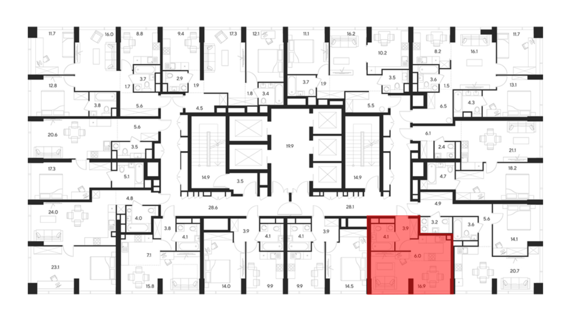 В проекте представлено множество планировочных решений — от студий до просторных 3х-комнатных квартир. Все лоты сдаются с подчистовой отделкой, высотой потолков до 3,5 метров и панорамными окнами.