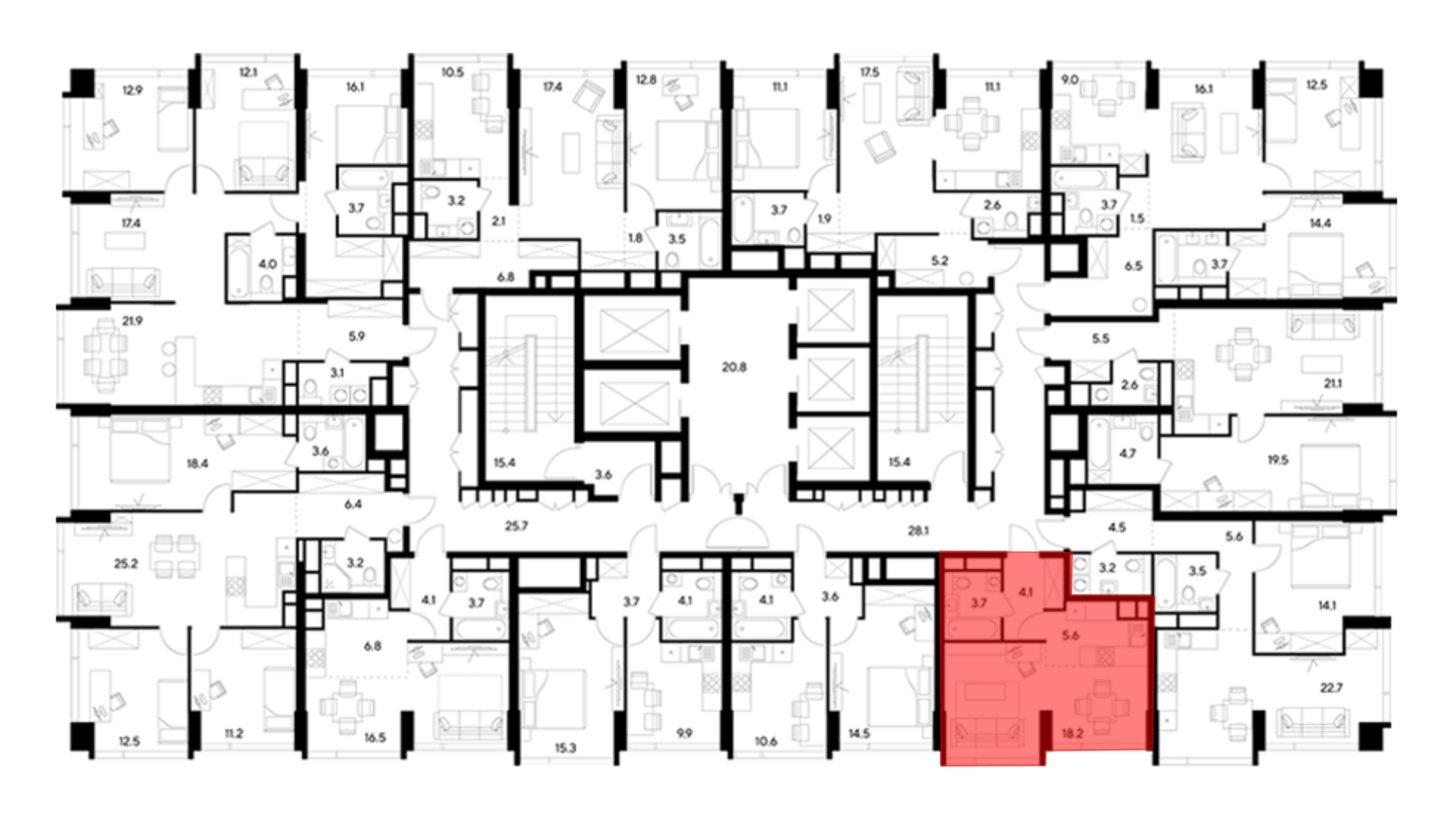 В проекте представлено множество планировочных решений — от студий до просторных 3х-комнатных квартир. Все лоты сдаются с подчистовой отделкой, высотой потолков до 3,5 метров и панорамными окнами.