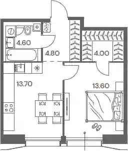 1-к.квартира, 40.7 м², 13 эт. в ЖК INJOY Корпус 1