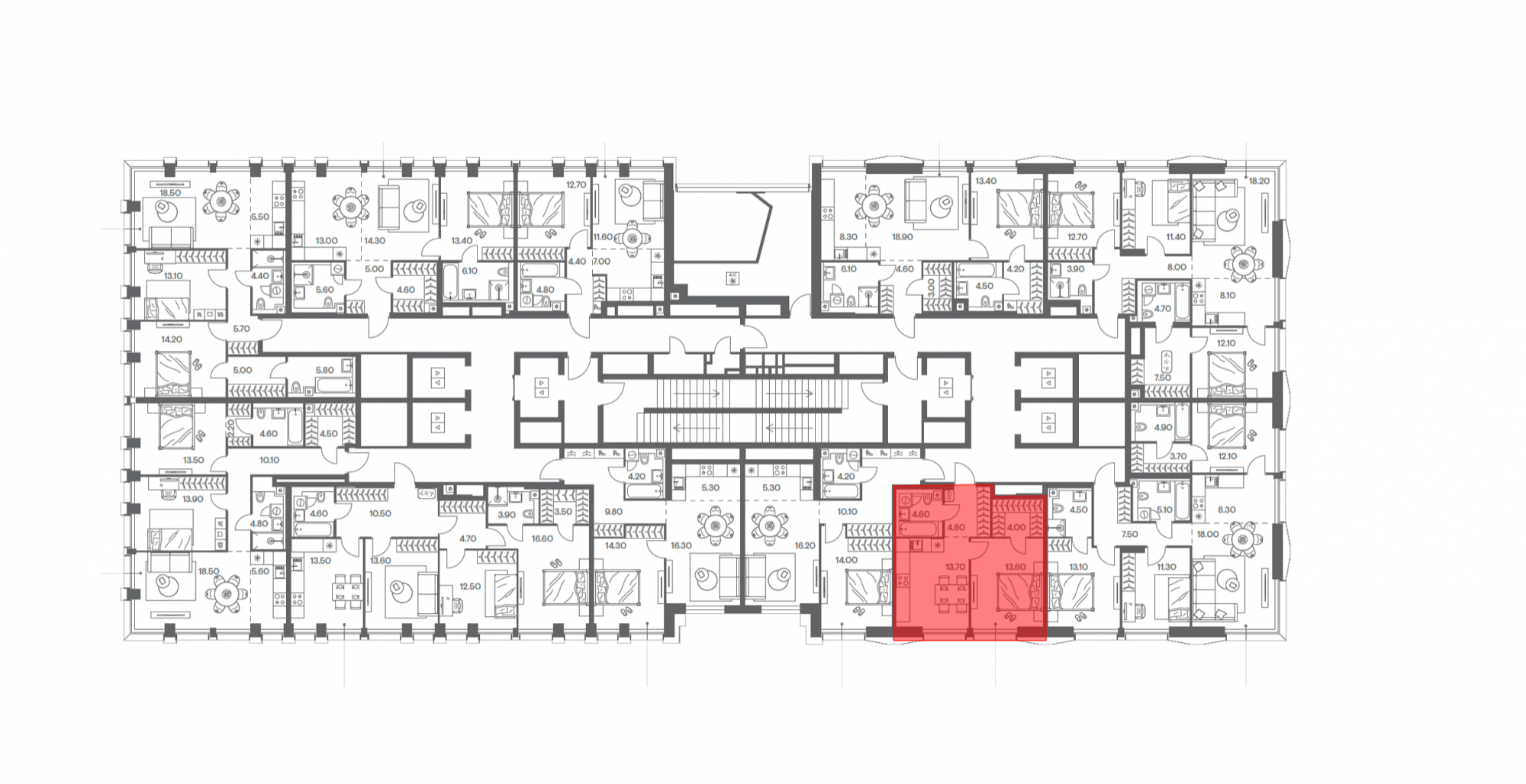 В проекте представлено множество планировочных решений — все лоты сдаются с увеличенными или панорамными окнами, высотой потолков до 3,85 метров и базовой отделкой. Имеются петхаусы с приватными террасами.