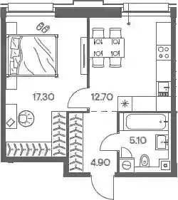 20 996 492 ₽1-к.квартира, 40.9 м², 7 эт.