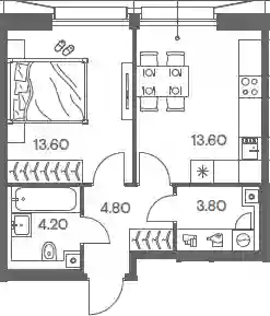 22 383 472 ₽2-к.квартира, 43.5 м², 13 эт.