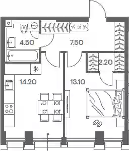20 420 009 ₽1-к.квартира, 41.8 м², 7 эт.