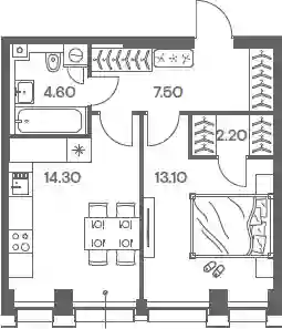 21 780 257 ₽1-к.квартира, 41.2 м², 14 эт.