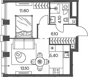 21 302 612 ₽1-к.квартира, 41.2 м², 18 эт.