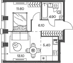 2-к.квартира, 41.1 м², 19 эт. в ЖК INJOY Корпус 1