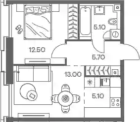 21 107 057 ₽2-к.квартира, 43.2 м², 4 эт.