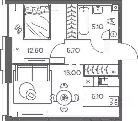 2-к.квартира, 41.4 м², 12 эт. в ЖК INJOY Корпус 1