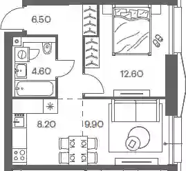 20 162 666 ₽1-к.квартира, 42.1 м², 9 эт.