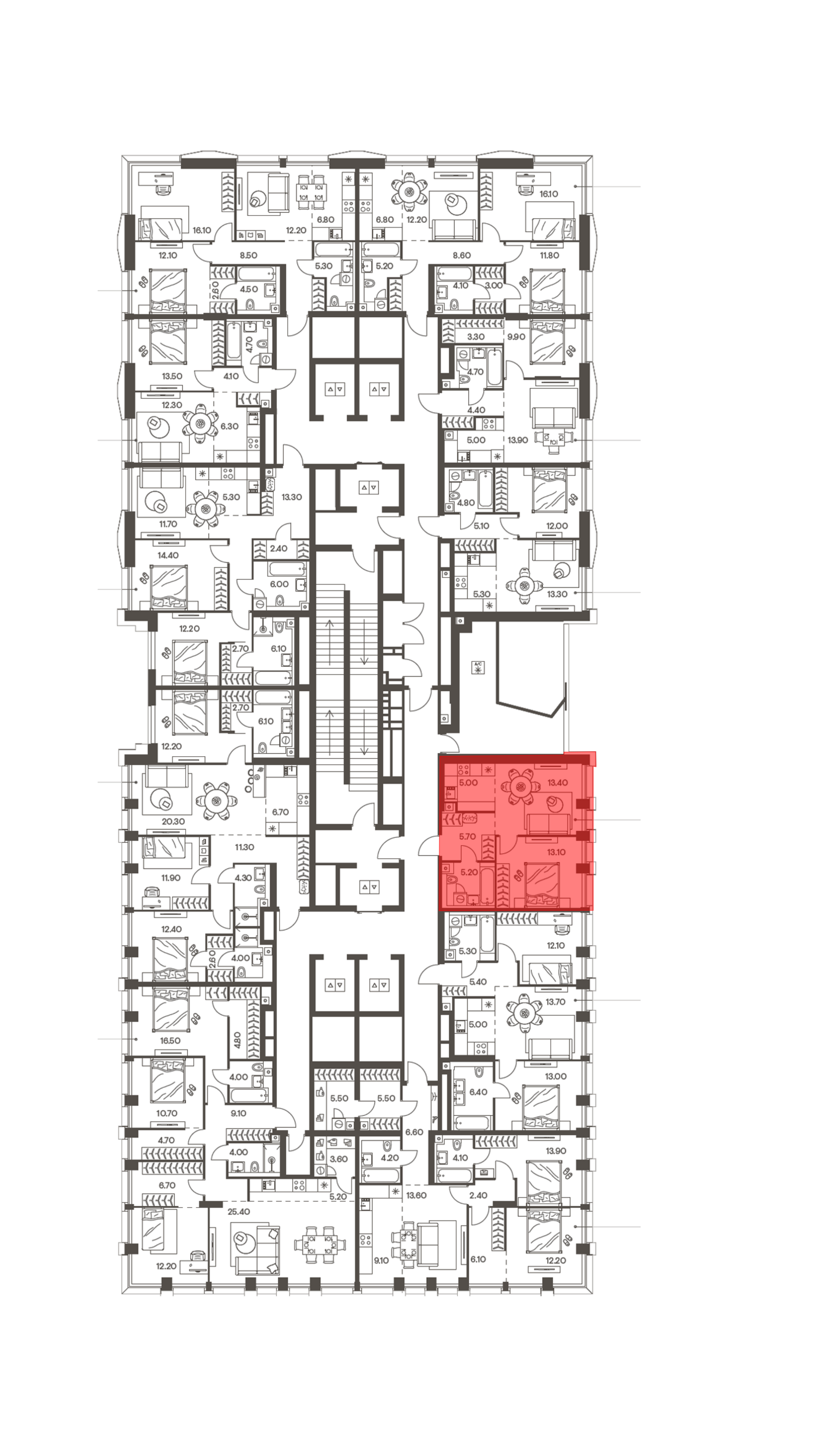 В проекте представлено множество планировочных решений — все лоты сдаются с увеличенными или панорамными окнами, высотой потолков до 3,85 метров и базовой отделкой. Имеются петхаусы с приватными террасами.