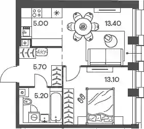 Проектом запланированы квартиры различных площадей и планировок от 23 до 96 кв.м. Квартиры передаются покупателям без отделки, с подчистовой и чистовой отделкой в двух вариантах на выбор: «Скандия» и «Брюгге». Высота потолков — 2,85 метра.