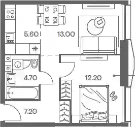 22 383 472 ₽2-к.квартира, 43.5 м², 13 эт.