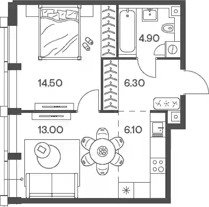 24 491 700 ₽2-к.квартира, 49.3 м², 3 эт.