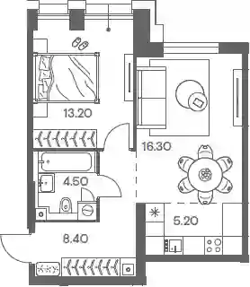 2-к.квартира, 47.6 м², 13 эт. в ЖК INJOY Корпус 1