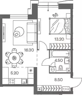 21 917 040 ₽2-к.квартира, 50.1 м², 8 эт.