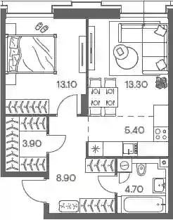 2-к.квартира, 49.3 м², 9 эт. в ЖК INJOY Корпус 1
