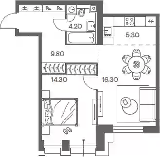 В проекте представлено множество планировочных решений — от студий до просторных 4х-комнатных квартир. Все лоты сдаются с базовой отделкой, высотой потолков до 3,16 метров и стандартными окнами. Предусмотрены квартиры с мастер-спальнями и гардеробными.