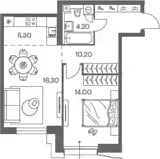 20 922 993 ₽2-к.квартира, 51.7 м², 2 эт.