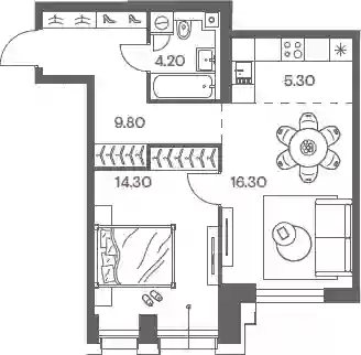 25 780 900 ₽2-к.квартира, 47.6 м², 30 эт.