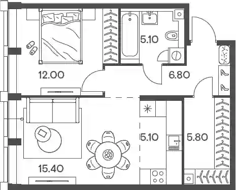 23 761 800 ₽2-к.квартира, 42.3 м², 25 эт.