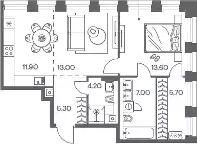 2-к.квартира, 60.7 м², 3 эт. в ЖК INJOY Корпус 1