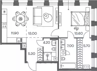В проекте представлено множество планировочных решений — от студий до просторных 4х-комнатных квартир. Все лоты сдаются с базовой отделкой, высотой потолков до 3,16 метров и стандартными окнами. Предусмотрены квартиры с мастер-спальнями и гардеробными.
