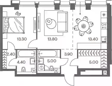 2-к.квартира, 61.2 м², 5 эт. в ЖК INJOY Корпус 1