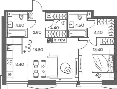33 501 400 ₽3-к.квартира, 73.9 м², 11 эт.