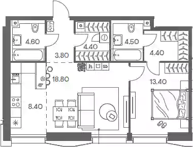 В проекте представлено множество планировочных решений — от студий до просторных 4х-комнатных квартир. Все лоты сдаются с базовой отделкой, высотой потолков до 3,16 метров и стандартными окнами. Предусмотрены квартиры с мастер-спальнями и гардеробными.