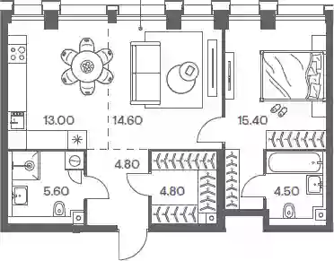 2-к.квартира, 62.7 м², 20 эт. в ЖК INJOY Корпус 1