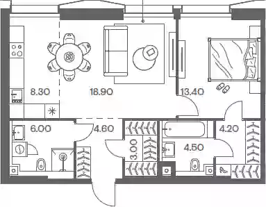 30 487 200 ₽2-к.квартира, 62.3 м², 4 эт.