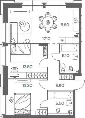 В проекте представлено множество планировочных решений — от студий до просторных 4х-комнатных квартир. Все лоты сдаются с базовой отделкой, высотой потолков до 3,16 метров и стандартными окнами. Предусмотрены квартиры с мастер-спальнями и гардеробными.