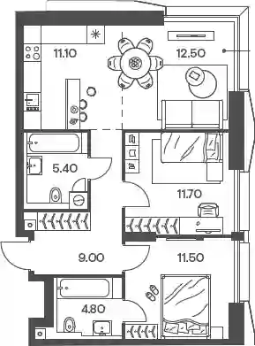 3-к.квартира, 66 м², 13 эт. в ЖК INJOY Корпус 1