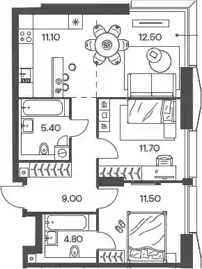 33 251 400 ₽3-к.квартира, 73.9 м², 9 эт.