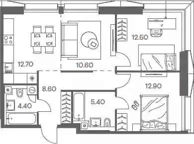 В проекте представлено множество планировочных решений — от студий до просторных 4х-комнатных квартир. Все лоты сдаются с базовой отделкой, высотой потолков до 3,16 метров и стандартными окнами. Предусмотрены квартиры с мастер-спальнями и гардеробными.