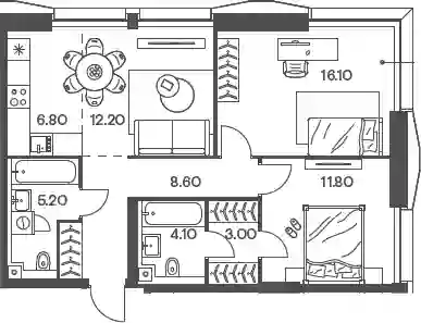30 581 669 ₽3-к.квартира, 68.9 м², 16 эт.