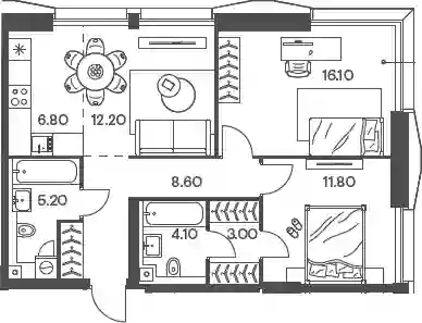В проекте представлено множество планировочных решений — все лоты сдаются с увеличенными или панорамными окнами, высотой потолков до 3,85 метров и базовой отделкой. Имеются петхаусы с приватными террасами.