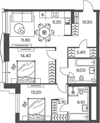33 920 100 ₽3-к.квартира, 78.3 м², 13 эт.