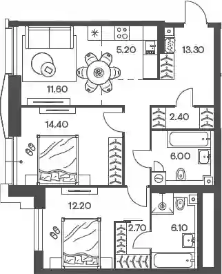 30 152 315 ₽3-к.квартира, 69.7 м², 24 эт.