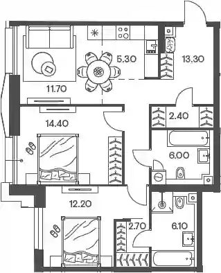 34 080 774 ₽3-к.квартира, 70.9 м², 12 эт.