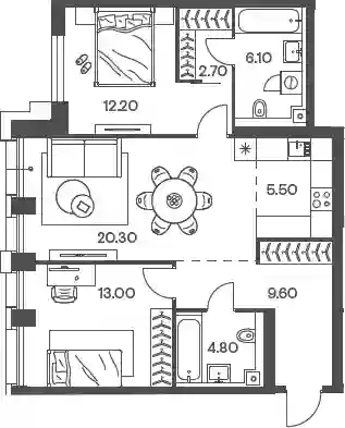 29 675 400 ₽2-к.квартира, 62.7 м², 20 эт.