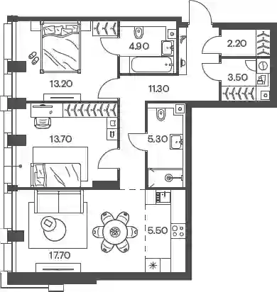 30 306 126 ₽3-к.квартира, 69.7 м², 17 эт.