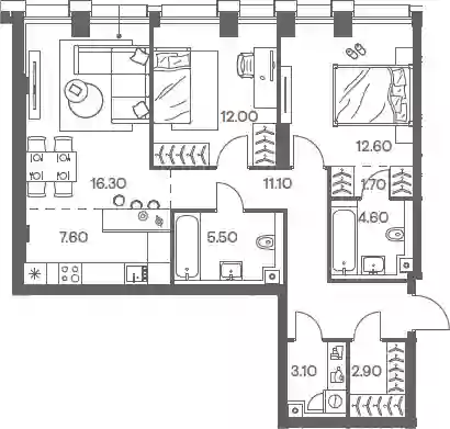 34 821 605 ₽3-к.квартира, 80.1 м², 18 эт.