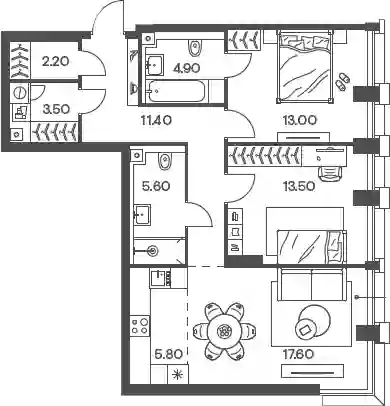 35 187 600 ₽3-к.квартира, 78.1 м², 21 эт.