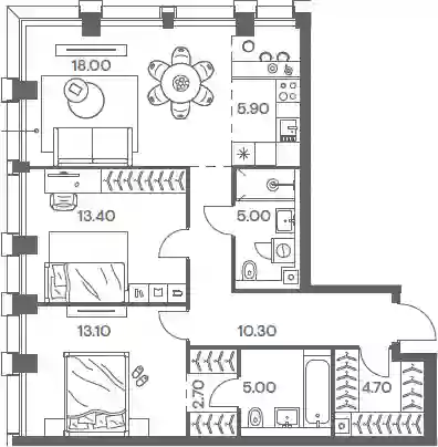 34 821 605 ₽3-к.квартира, 80.1 м², 18 эт.