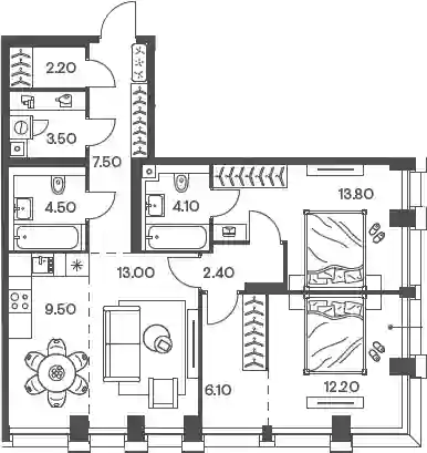35 371 700 ₽3-к.квартира, 80.8 м², 19 эт.