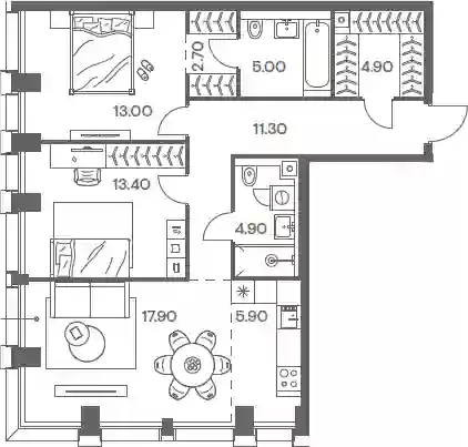 35 371 700 ₽3-к.квартира, 80.8 м², 19 эт.